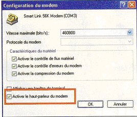 - Cochez ou décochez la case Activer le haut-parleur du modem